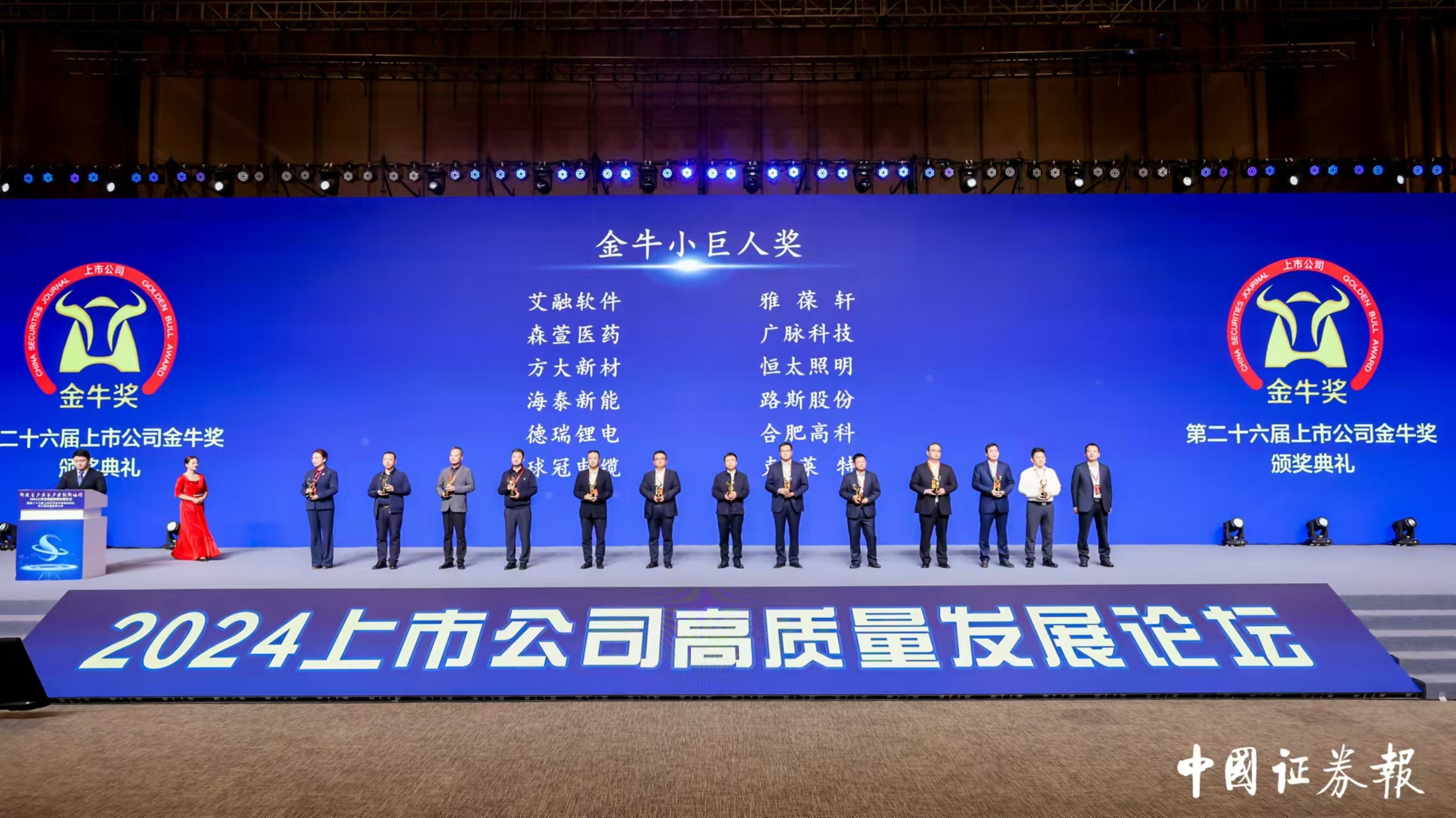 10月24日,由中国证券报与南通市人民政府联合主办、北京基金小镇全面战略合作的2024上市公司高质量发展论坛暨第二十六届上市公司金牛奖颁奖典礼在江苏南通隆重举行。盛会上,路斯凭借其在宠物食品行业的卓越表现和创新能力,斩获了“金牛小巨人奖”。金牛奖由中国证券报倾力打造,一直致力于成为资本市场最具公信力的上市公司权威奖项,是引领上市公司健康发展的一面旗帜,被誉为财经领域的“奥斯卡”。本届共设置九大奖项
