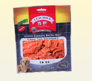 产品名称:芝麻缠肉 规格型号:100g、200g、400g三种包装 每箱数量:100袋 公司网址: www.luspet...